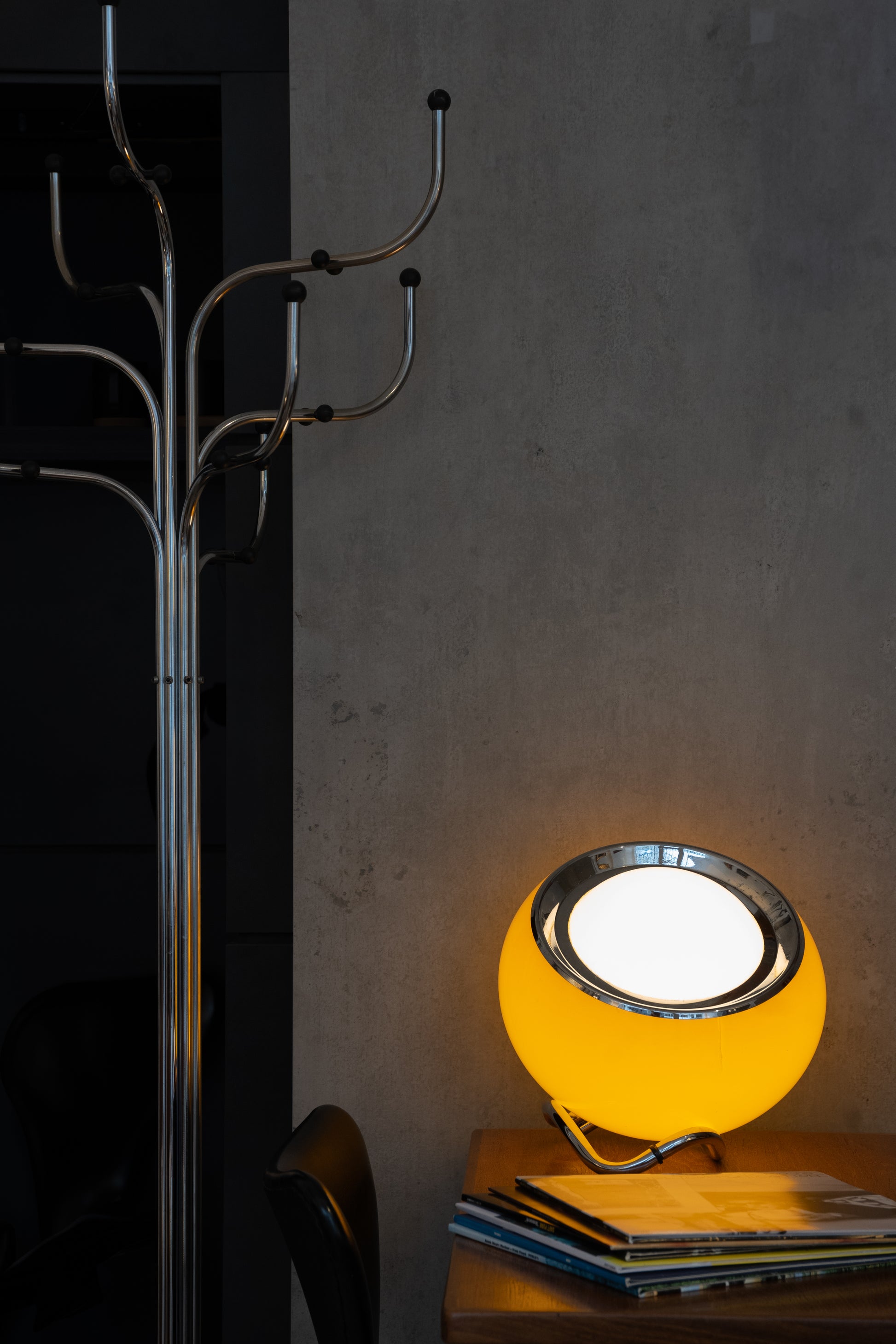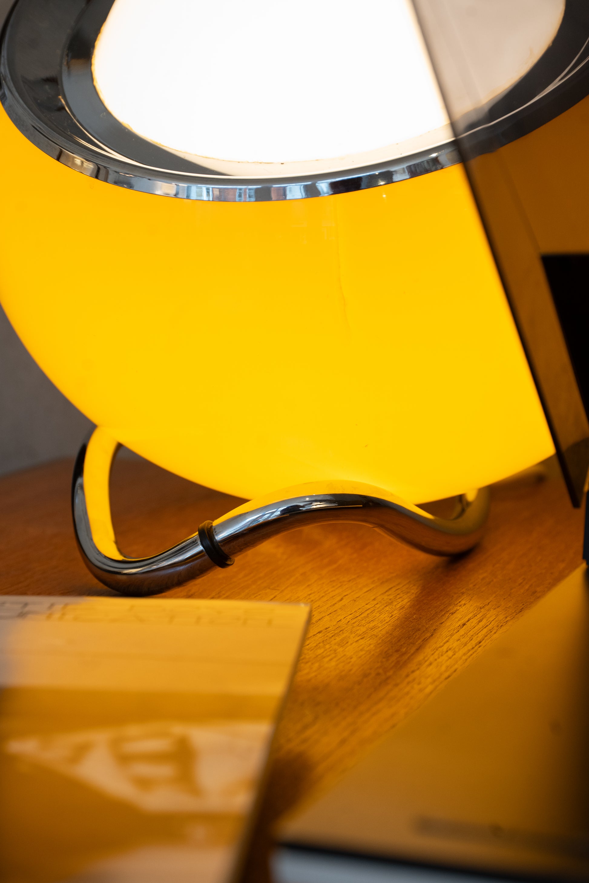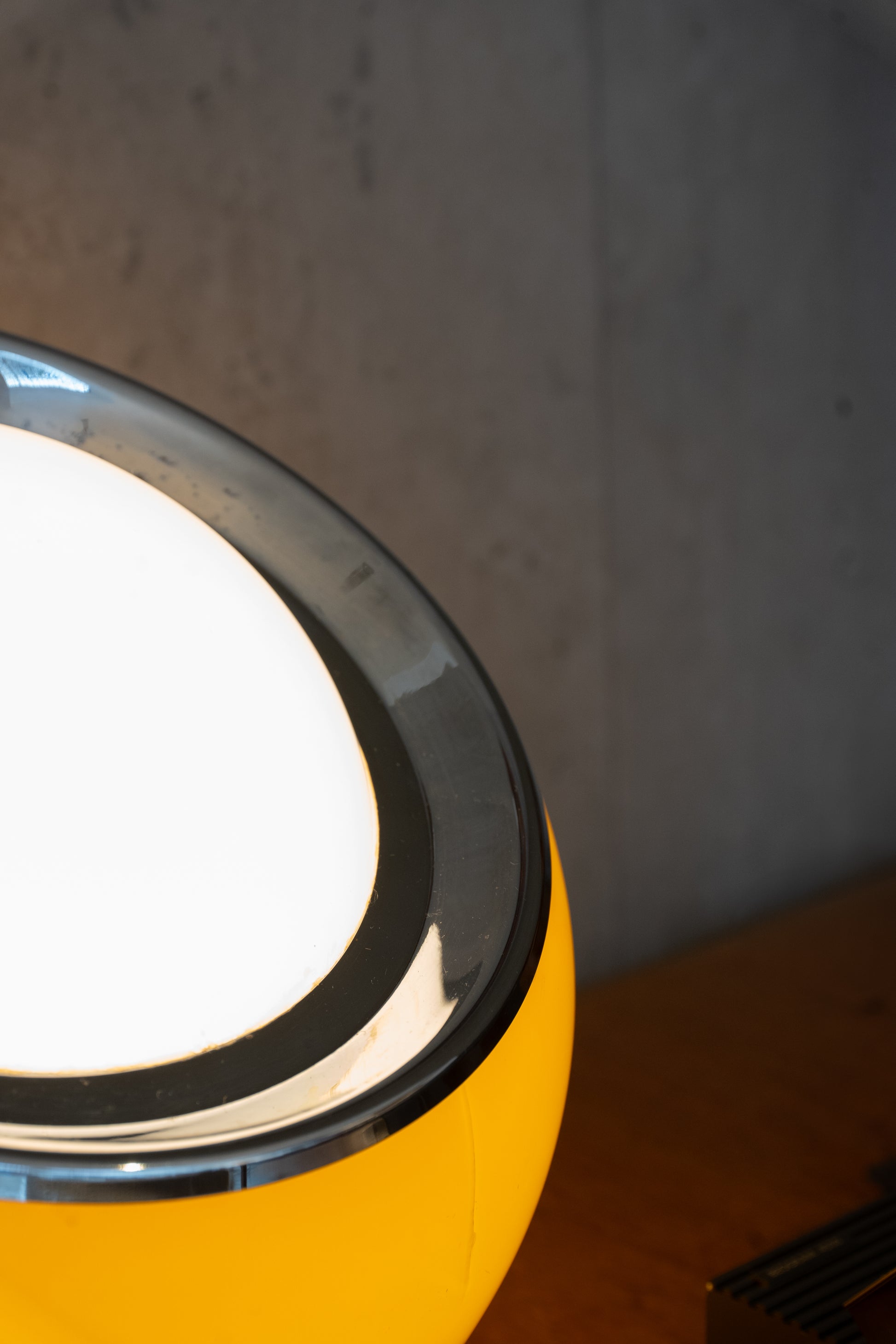 A space age floor lamp, circa 1970 in yellow acrylic with chrome fitting and stand by Harvey Guzzini for Italian 6G Studio Clan.