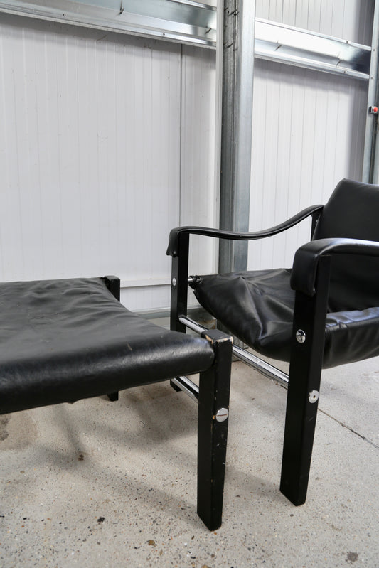 'Safari' Ebonised Armchair and Matching Footstool by Maurice Burke for Arkana, (1960s) UK