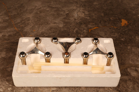 A boxed 3 piece set of chrome plated model S22 candle holders (Germany) 1960s