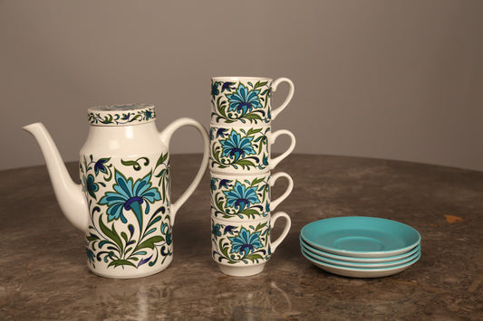A midwinter pottery coffee set in 'Spanish Garden' pattern by Jesse Tait (1960s)