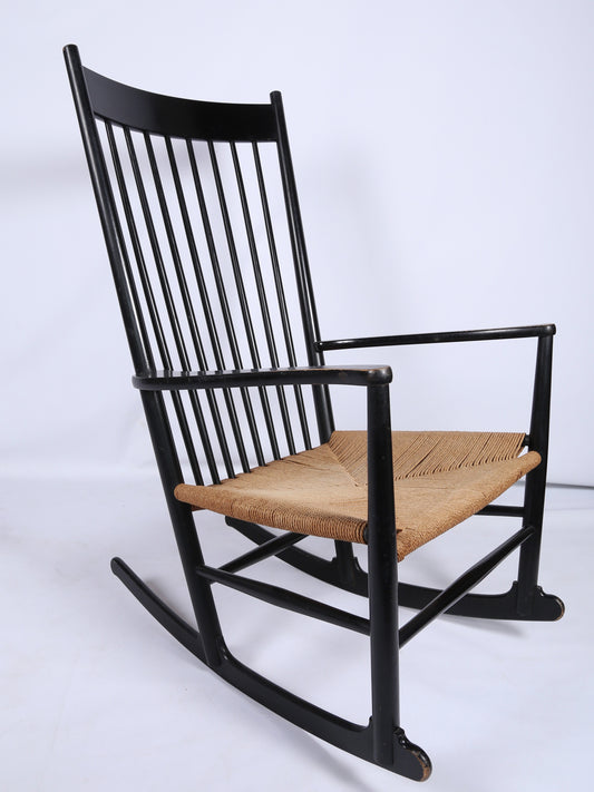 J18 'black edition' rocking chair by Hans Wegner for FDB Möbler (Denmark) 1944
