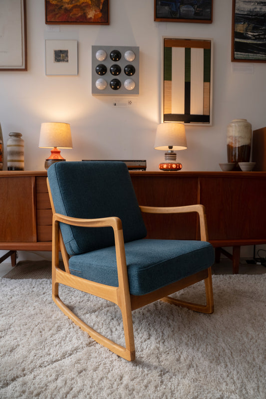 Ole Wanscher FD 110 teak rocking chair (France & Daverkosen) Denmark, 1960s