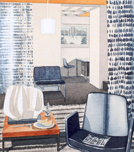 Costas Andrew Mikellides (1938-2019) msia, fcsd, 1960s interior watercolour