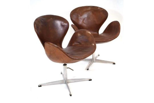 Pair of early swan chairs by Arne Jacobsen for Fritz Hansen (1958-1962)