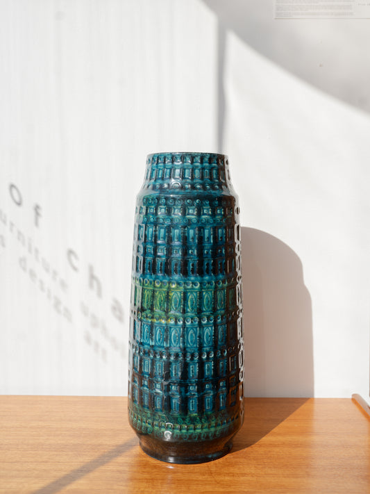 Very large Green and Turqouise Geometric Impressed Floor Vase, (1960s) West Germany