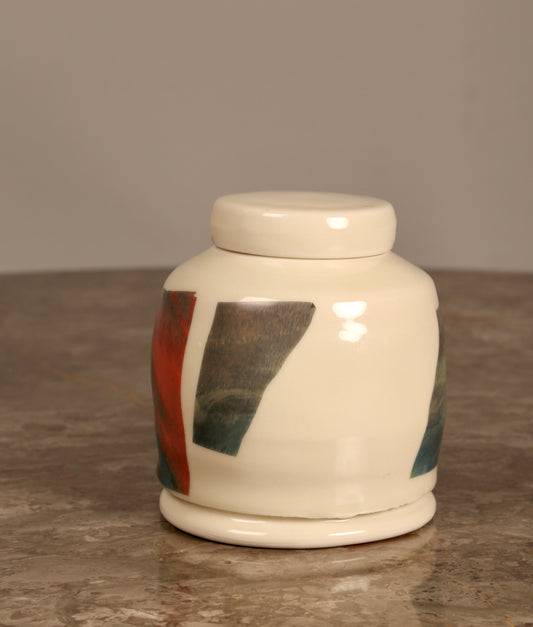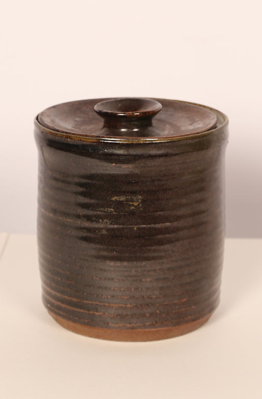 Midcentury treacle glazed container with lid (matching smaller one available)