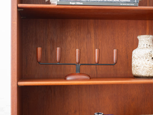 Danish midcemntury Five-Arm Teak and Metal Candlestick Holder, c.20th Century