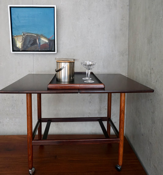 Rosewood Flip-top Expandable Cart with Removable Tray by Grete Jalk (Denmark) 1960s