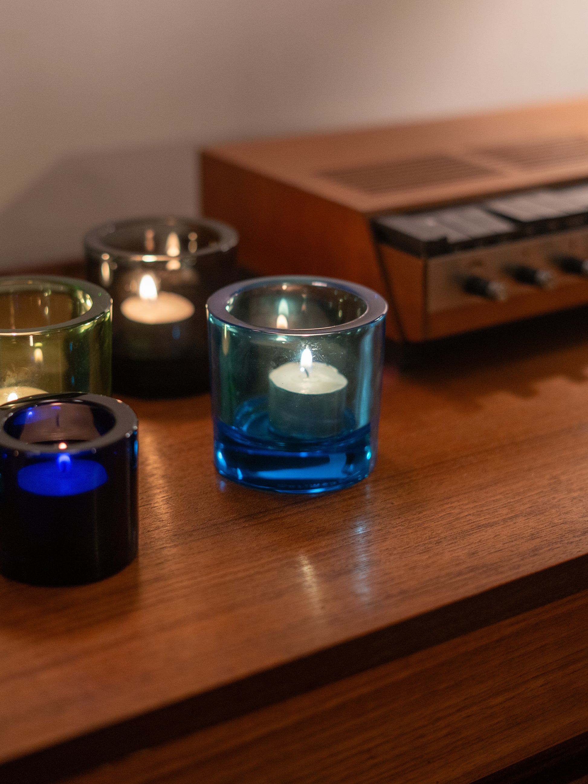 Founded in Helsinki in 1951, Marimekko is known for its bold textiles, clean forms and modernist Scandinavian approach to everyday objects. While most famous for its prints, the brand has a long history of producing high-quality glassware and ceramics, always with a focus on timeless design and usability. These votives reflect that ethos: simple, functional pieces with strong colour and a confident shape.