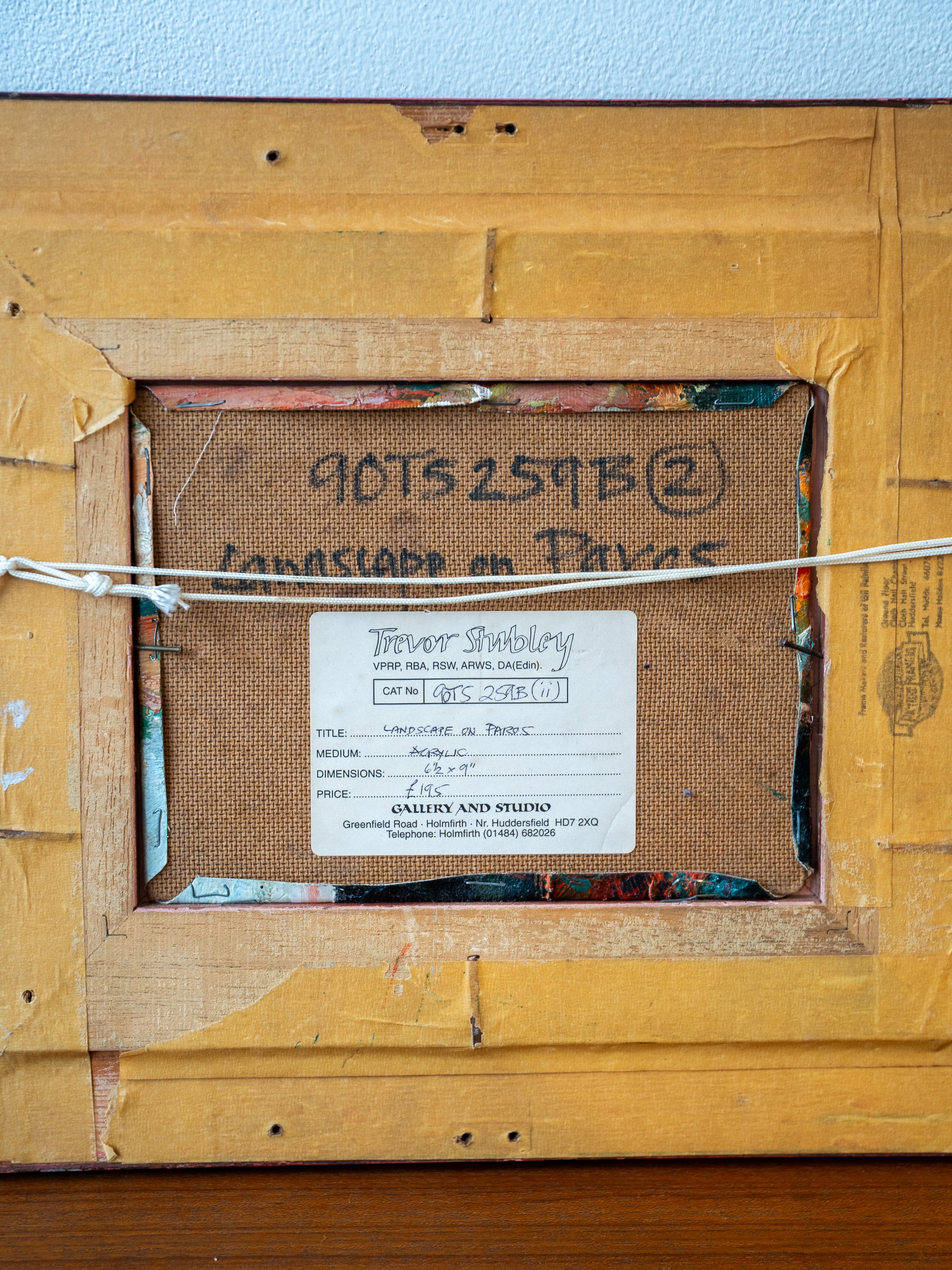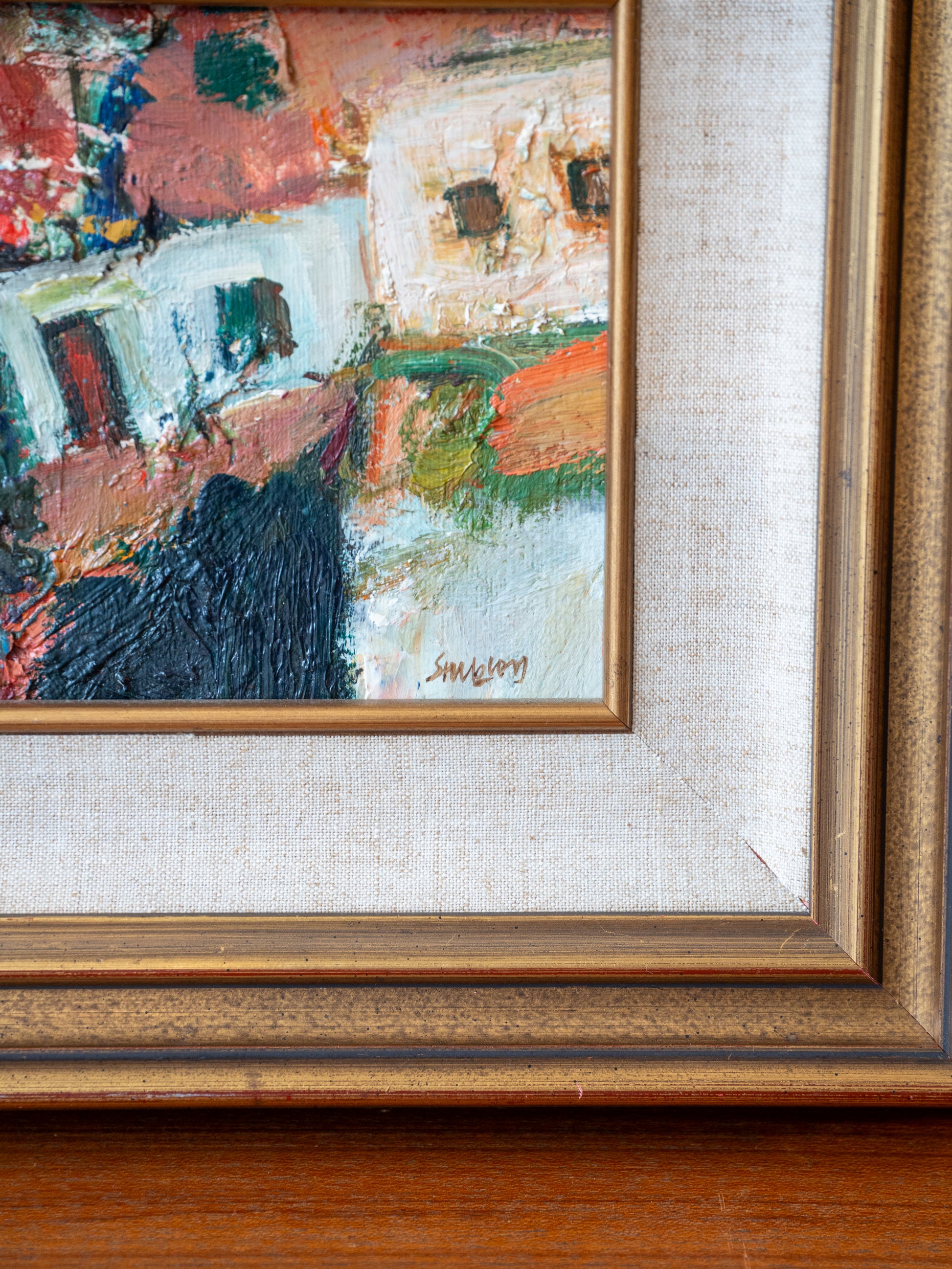 The work is presented in its original gilt frame with a textured linen slip - a classic mid-century pairing that enhances the warmth and depth of the painting. Signed and titled by the artist, it is a beautifully preserved example of Stubley’s more expressive, landscape-driven output.