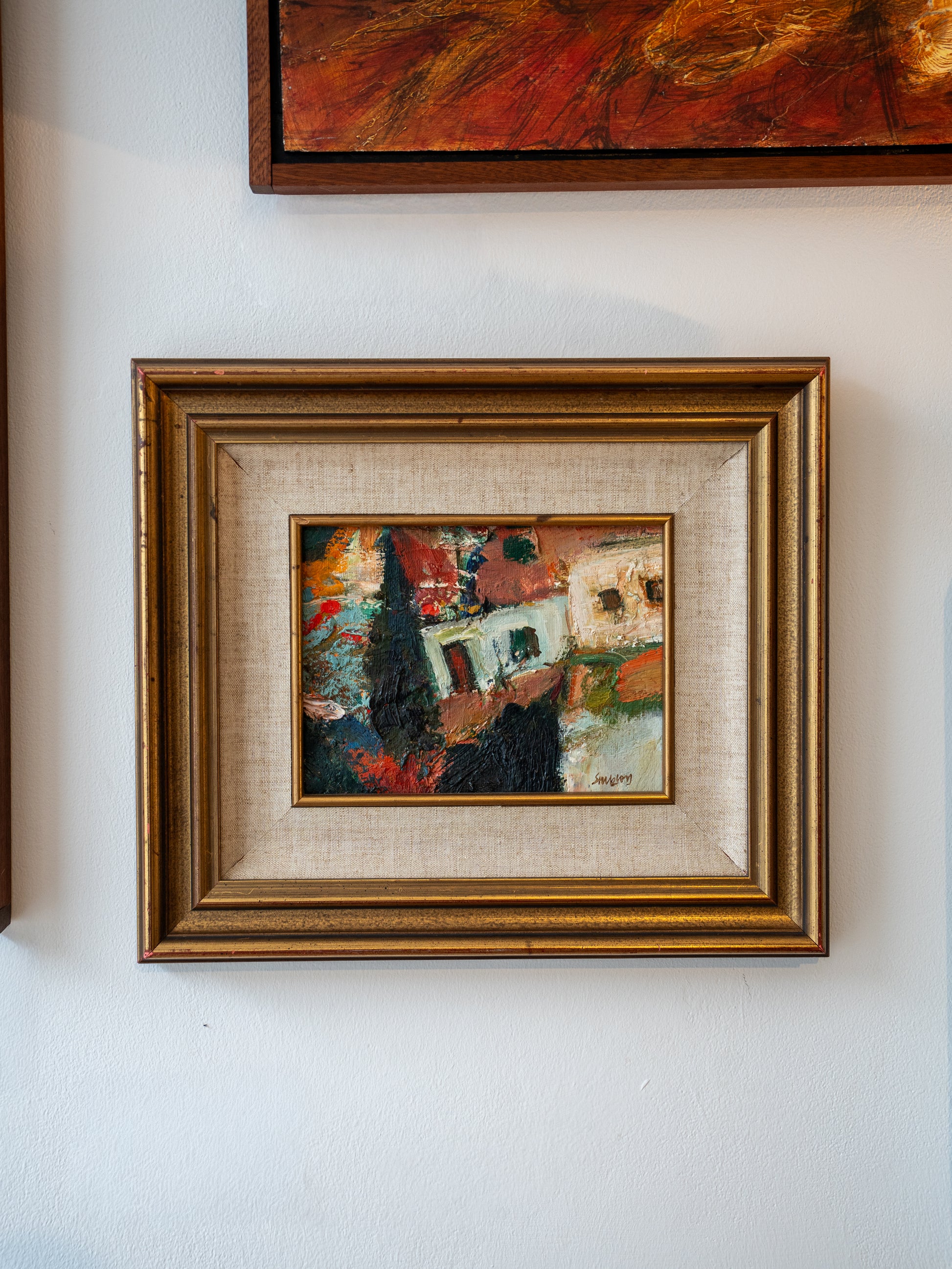 His landscape pieces, such as Landscape on Pavos, reveal a confident, expressive painter with an instinctive understanding of tone, movement and structure, works that sit beautifully within a mid-century or design-led interior.
